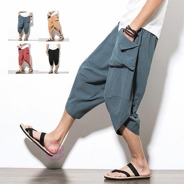 亜麻 麻 リネン サルエルパンツ ワイドパンツ パンツ 9分丈 イージパンツ クロップドパンツ 旅行 海 ビーチ リラックス リネンパンツ 大きいサイズ メンズ トレーニングボトムス 人気ブランドの Vivalafocaccia Com